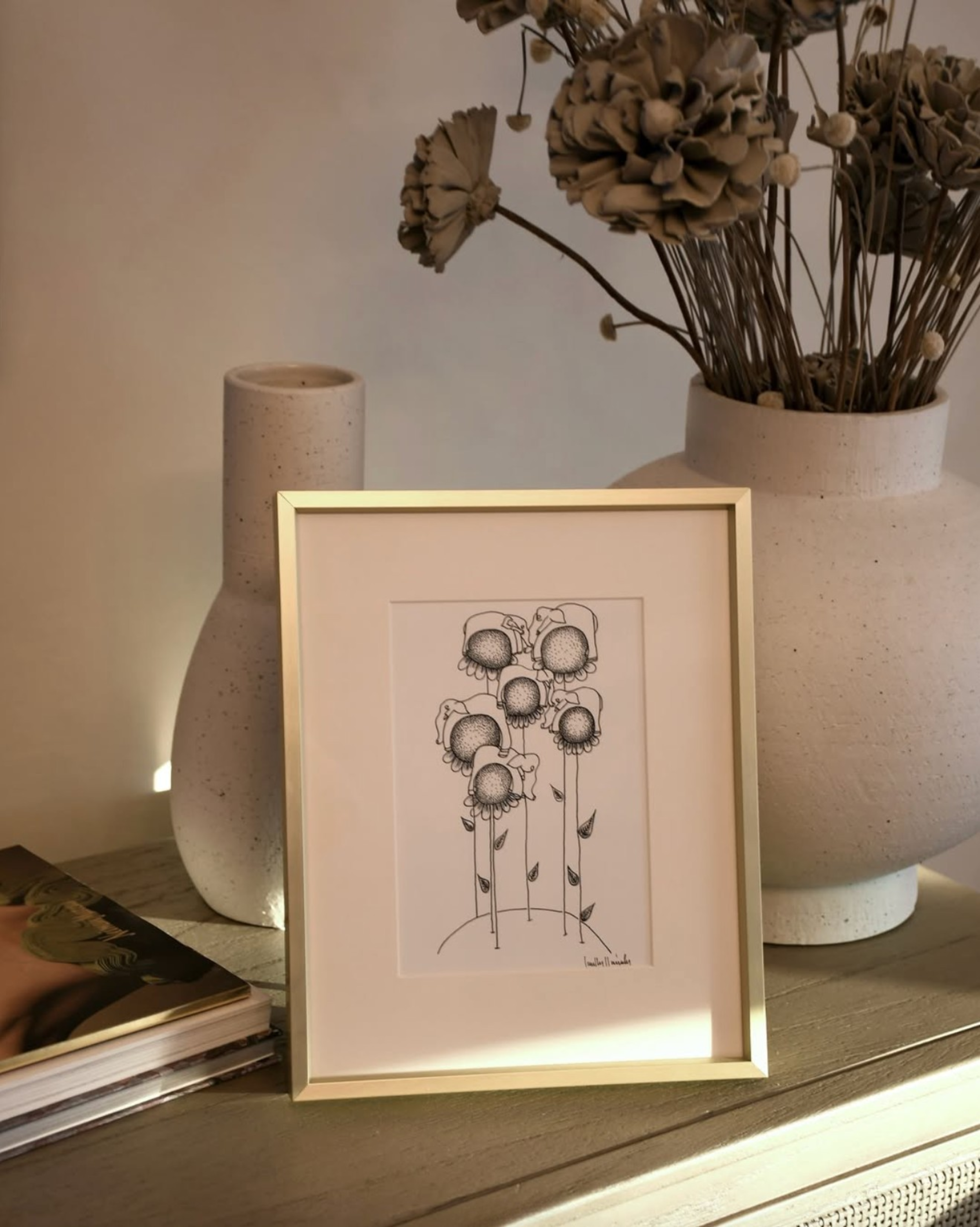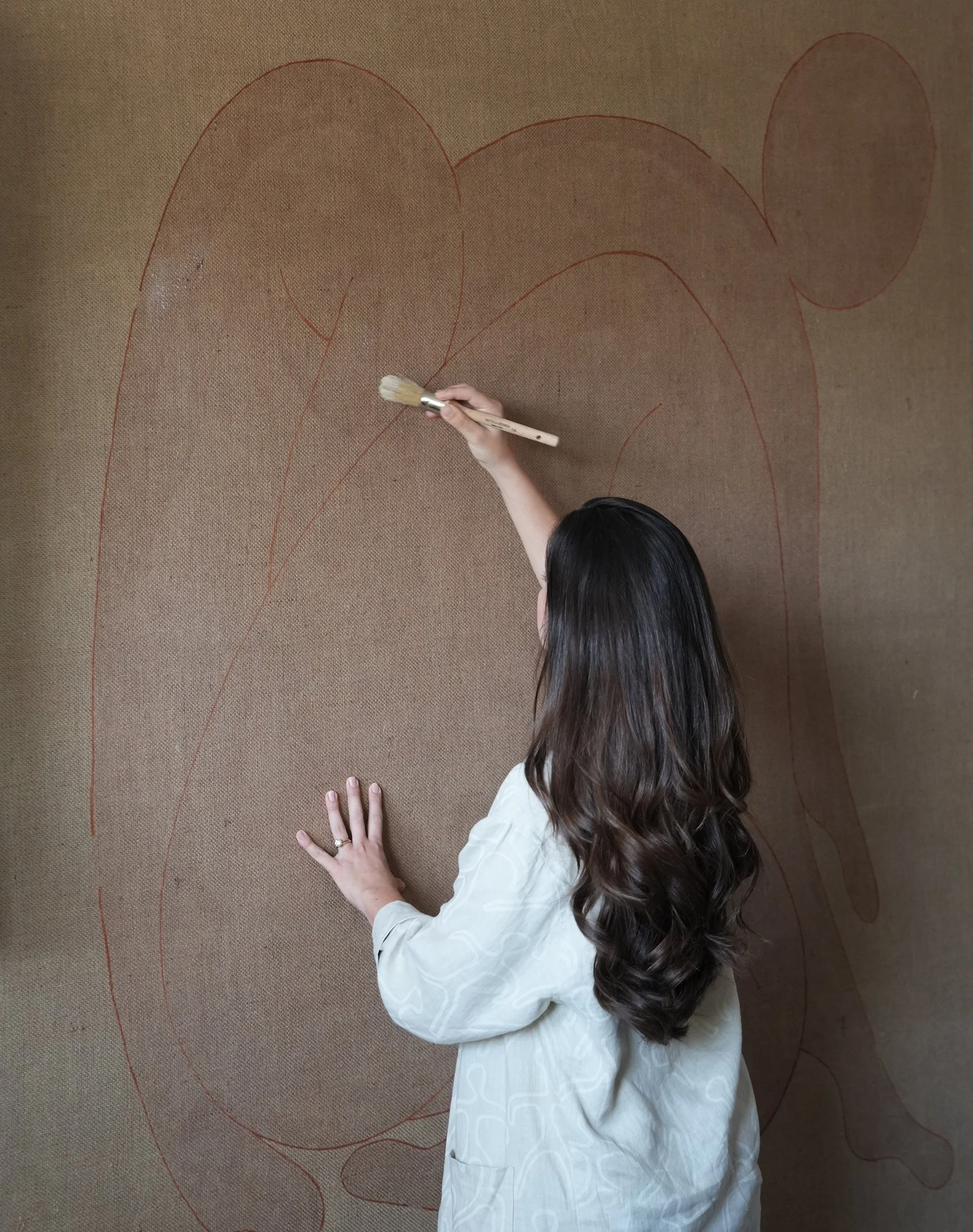 Her practice is rooted in quality and intentionality. She works with handmade paints crafted from natural pigments, including cochineal—a rich red derived from insects found on Mexican nopal cacti. Used for centuries in Indigenous art and textiles, cochineal connects her work to history, heritage, and the artisans who came before her.